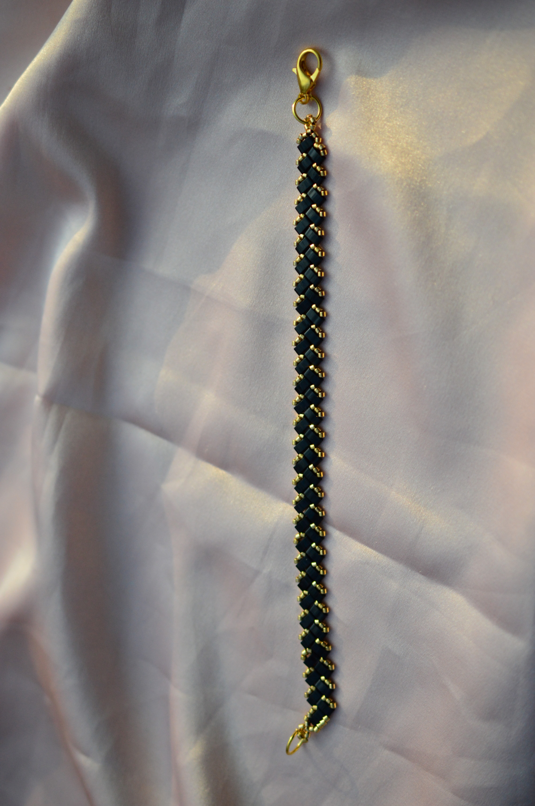 Bratara Tila in nuante de negru si auriu este un produs unic, handmade care se potriveste perfect pentru un look iesit din comun. Iti garantam ca purtand aceasta bratara vei atrage privirile tuturor.