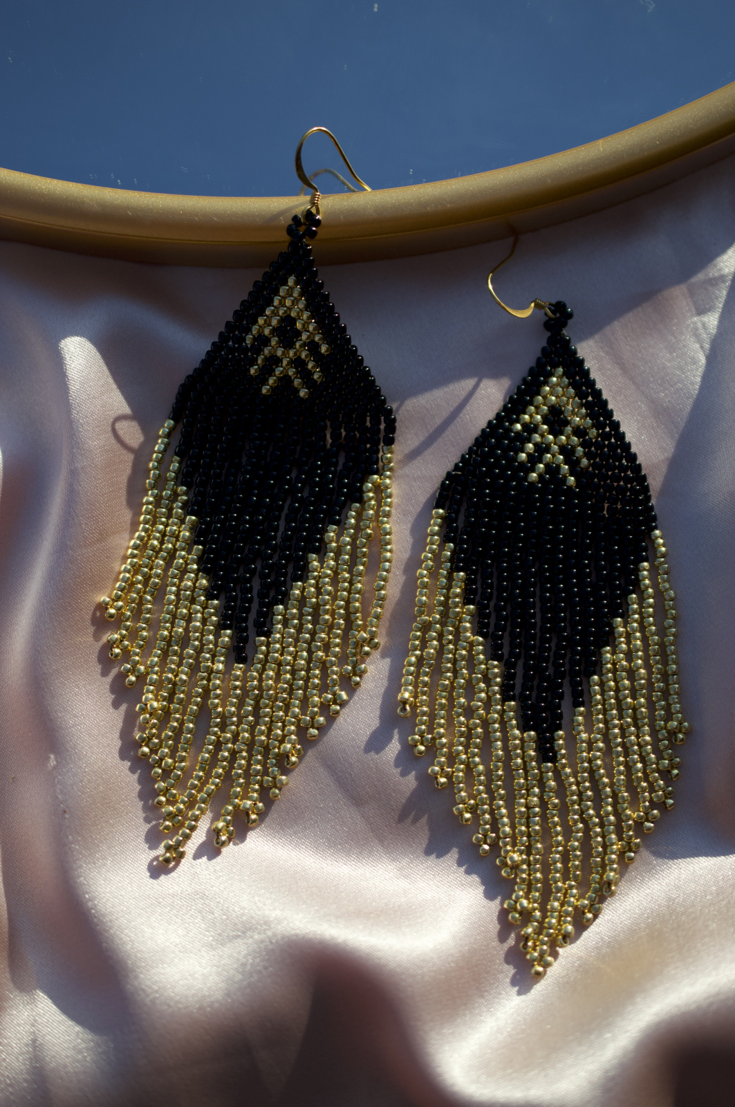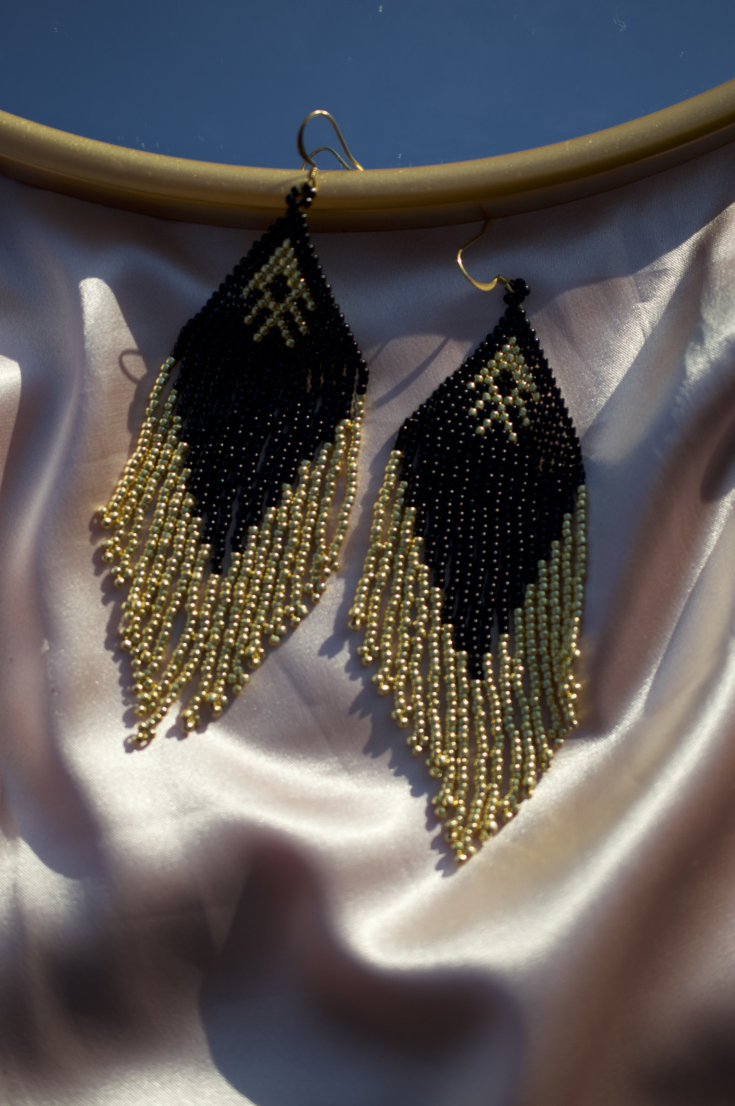 Cerceii Fishbone sunt o declaratie de stil si personalitate. Realizati manual cu margelute japoneze Toho, acest model alungit combina un motiv geometric subtil in partea superioara cu franjuri lungi si fluizi, oferind miscare si stralucire la fiecare pas.