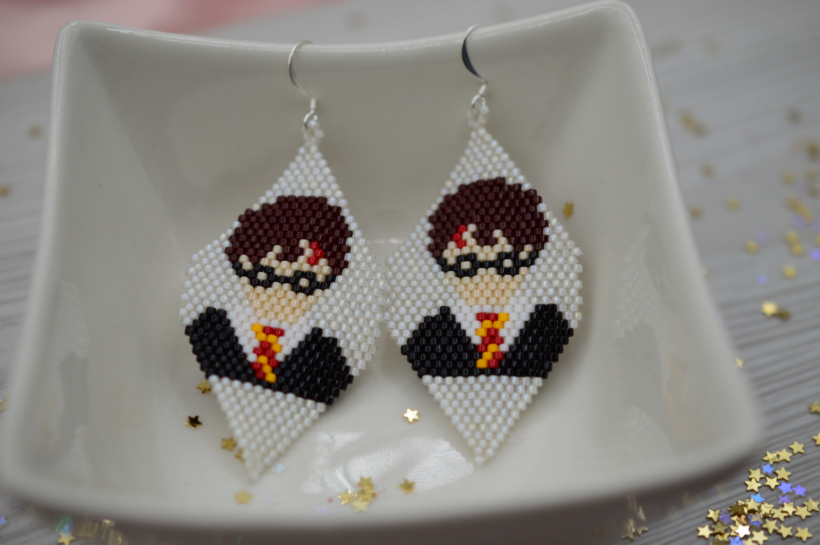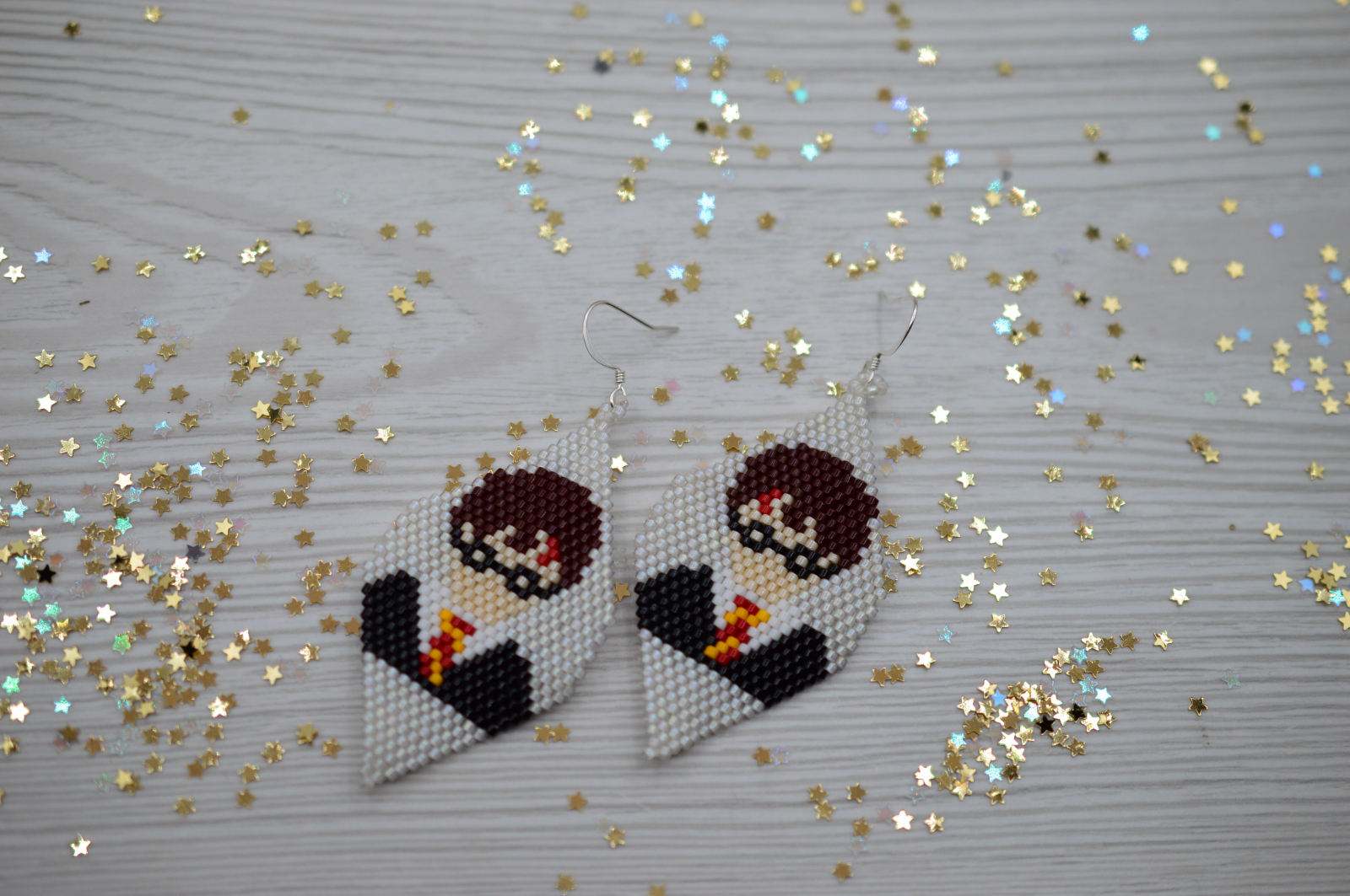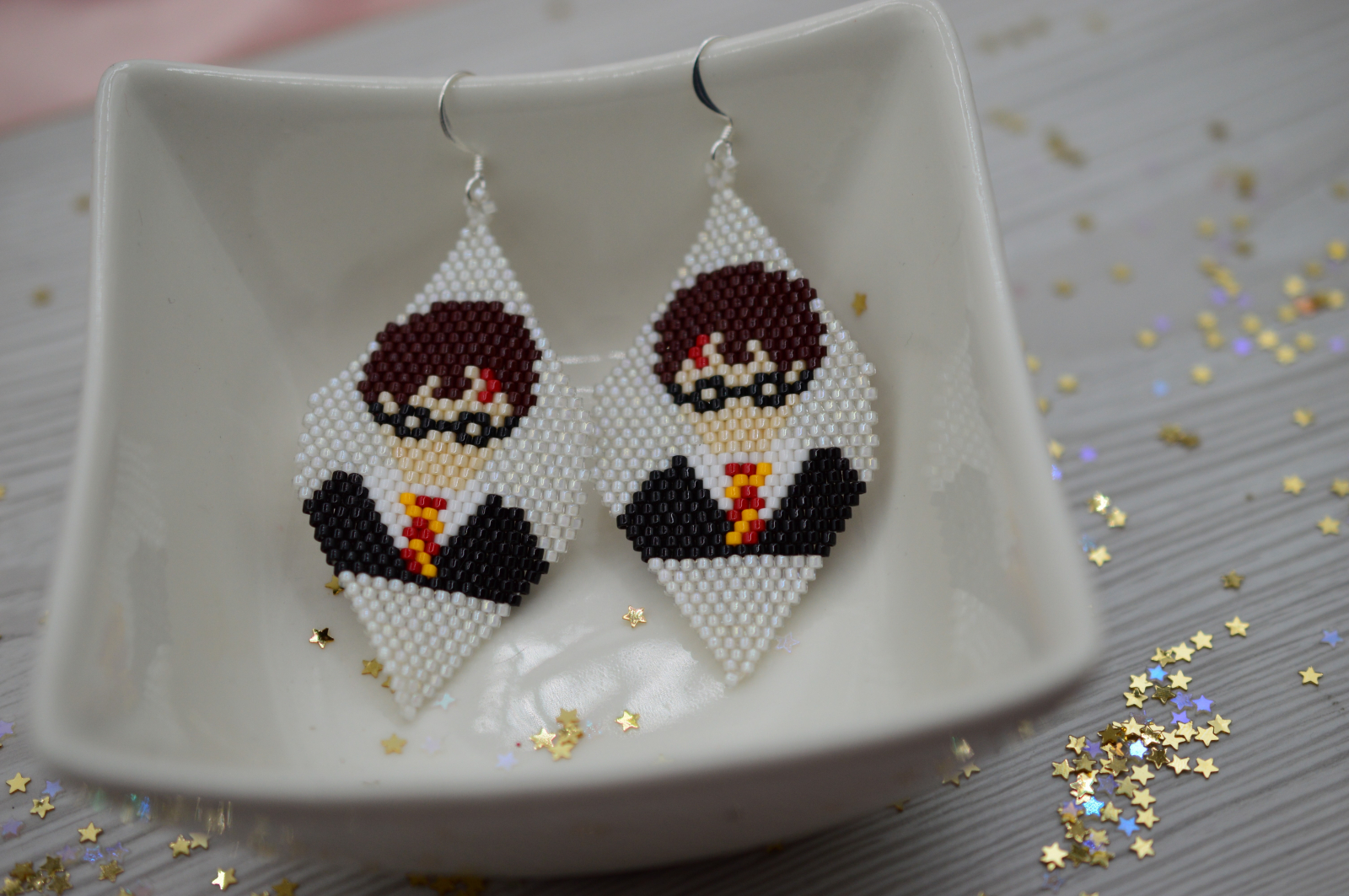 Realizati manual cu margele Delica de inalta calitate si accesorizati cu tortite placate cu argint, acesti cercei aduc la viata universul vrajitorilor cu un design elegant si detalii impresionante.