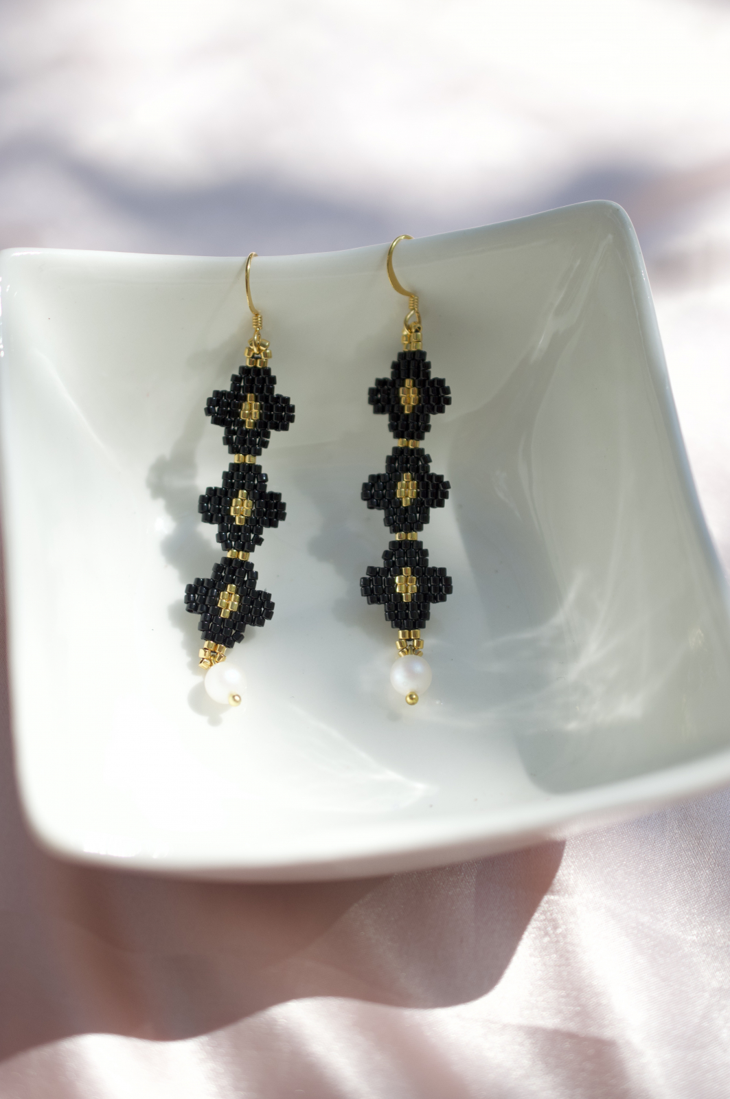 Simpli, dar spectaculosi! Cerceii Sakura Drop aduc delicatetea florilor intr-un design vertical modern. Disponibili in doua variante – roz pal sau negru intens – sunt lucrati manual cu migala din margele Miyuki placate cu aur si sunt finalizati cu o perla Swarovski, ce adauga un strop de feminitate si gratie.