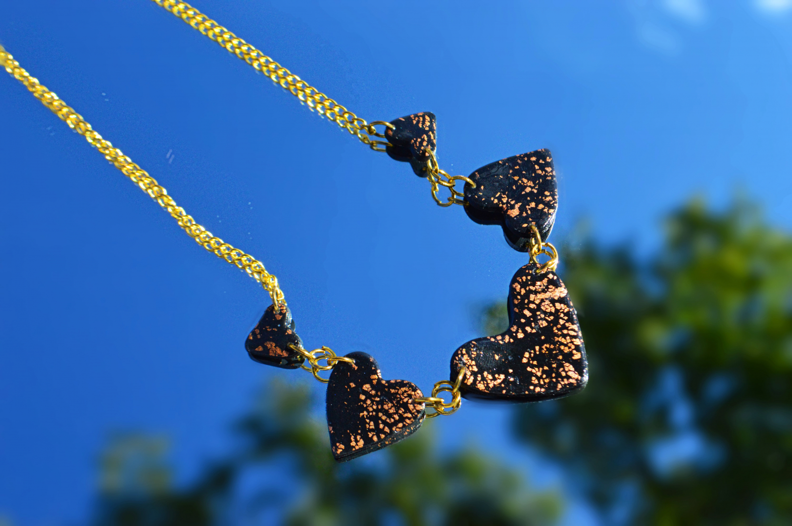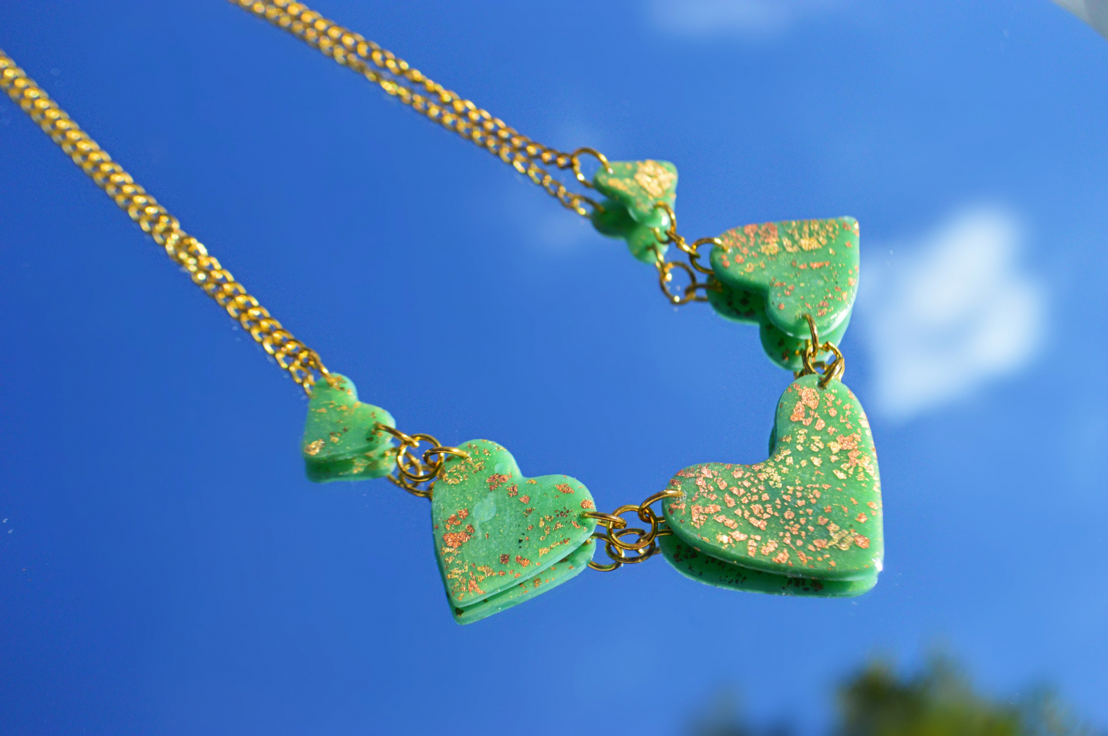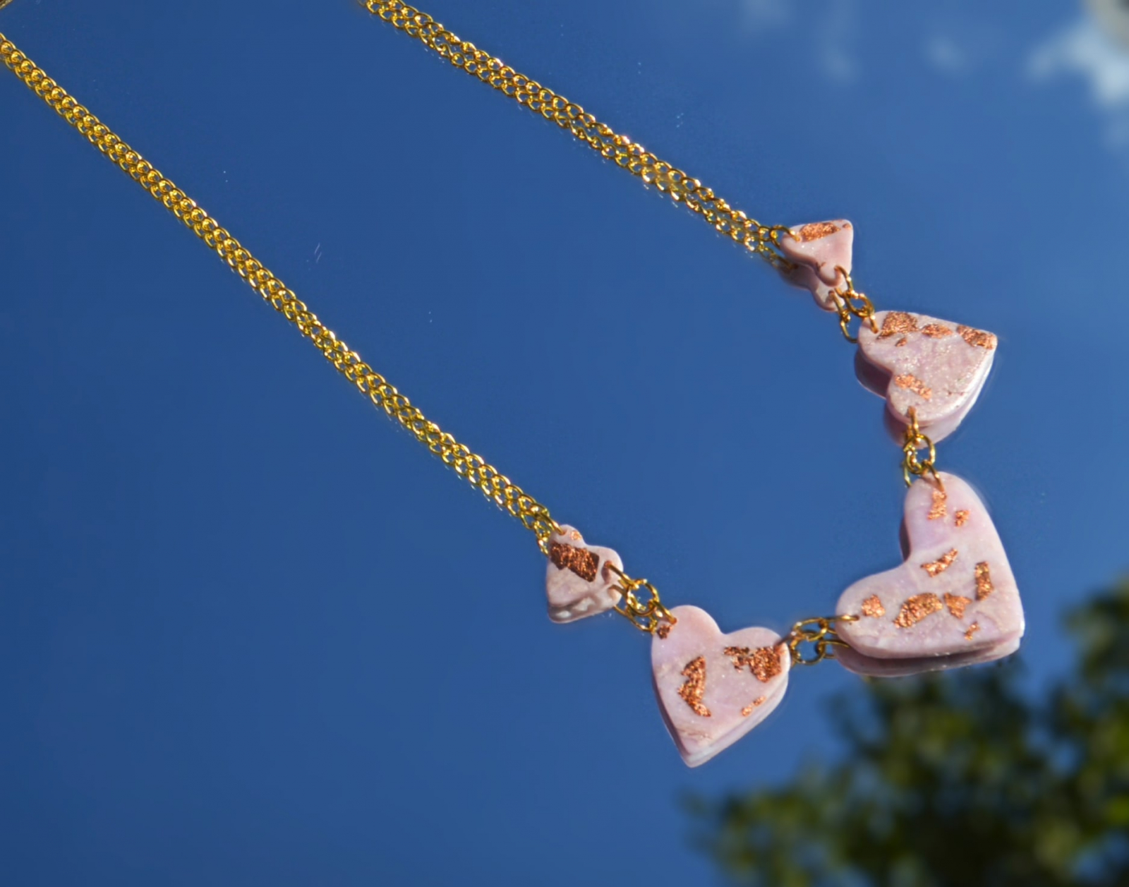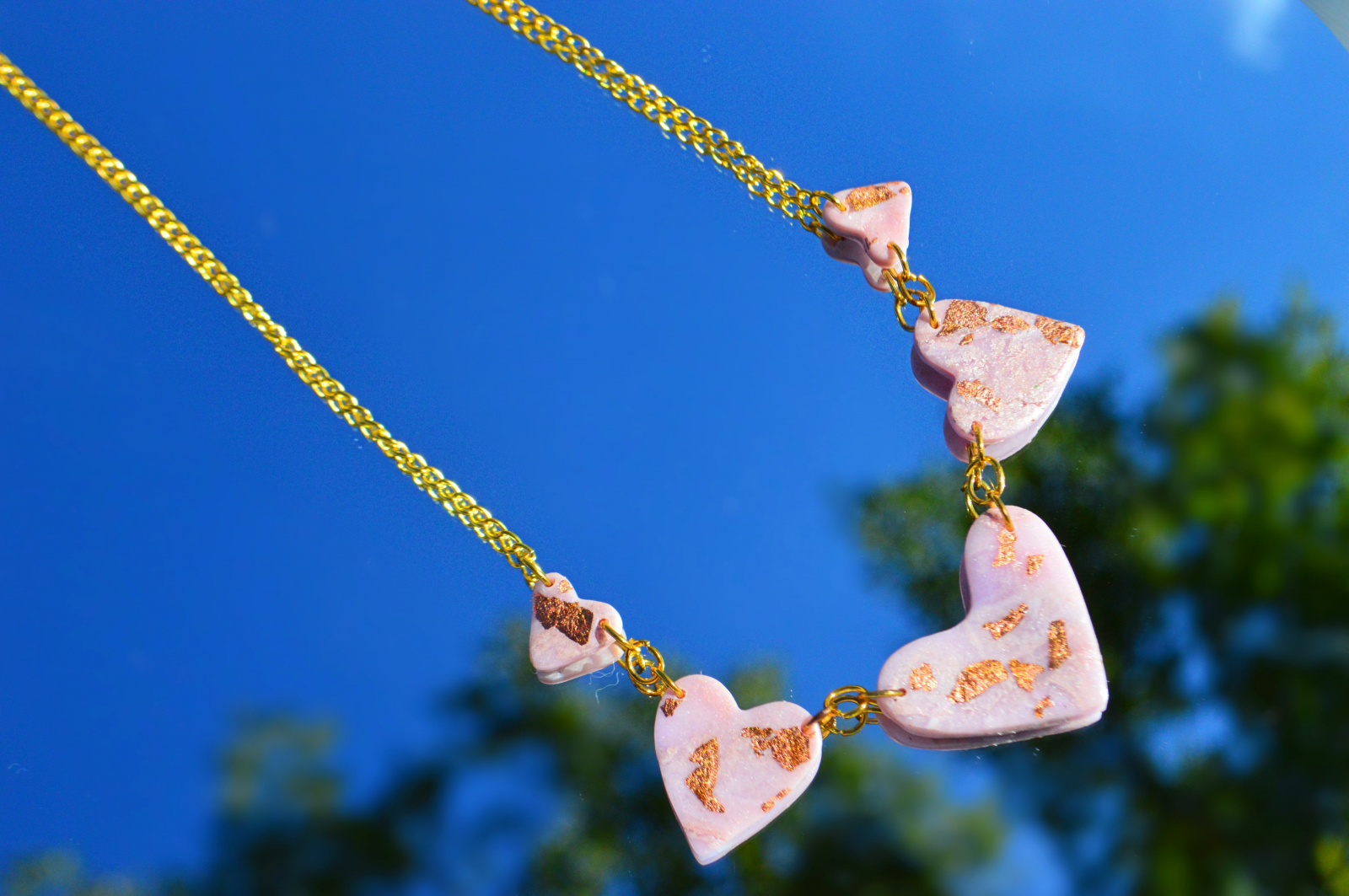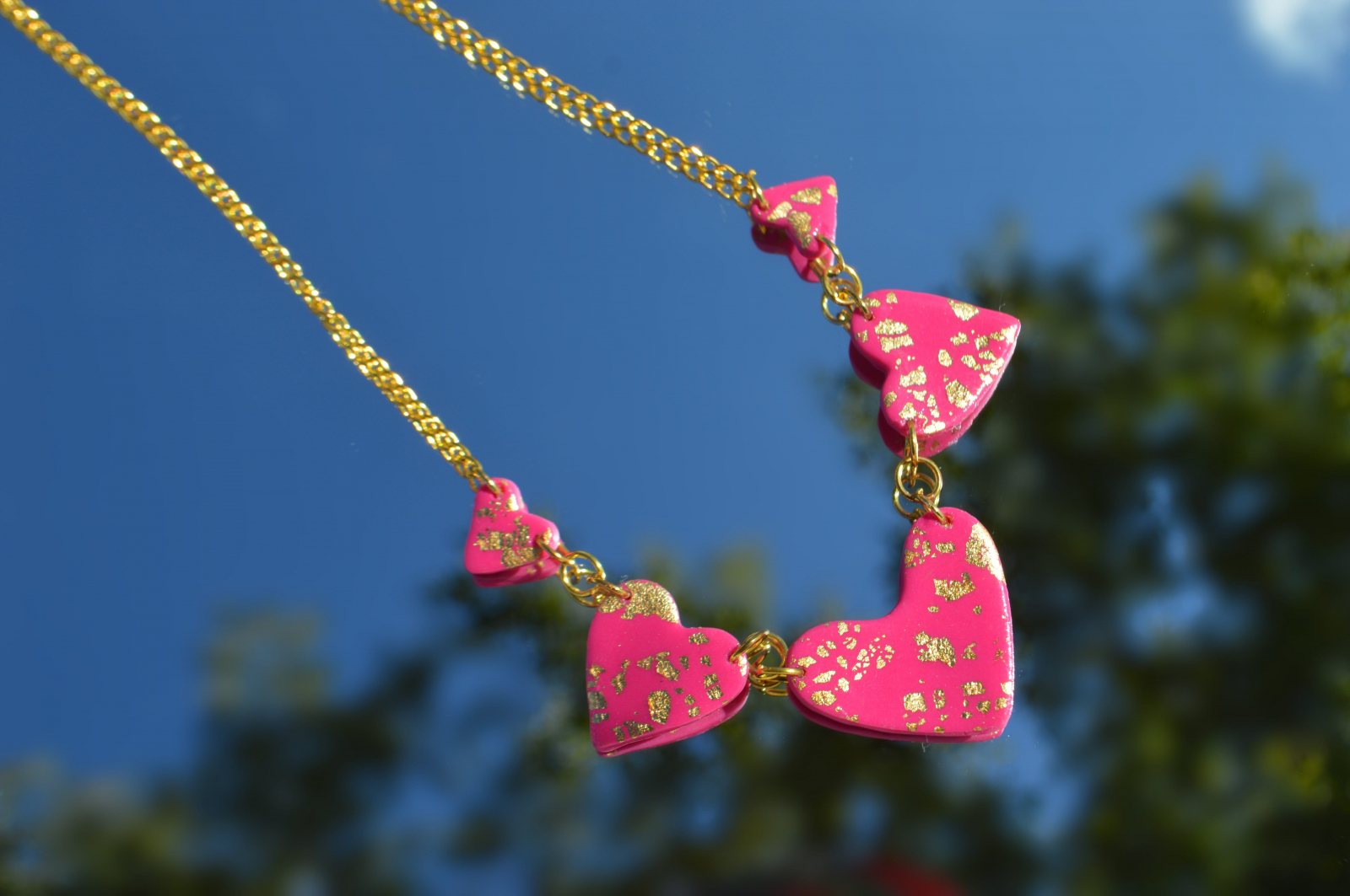 Colier din lut polimeric in forma de inimioare.