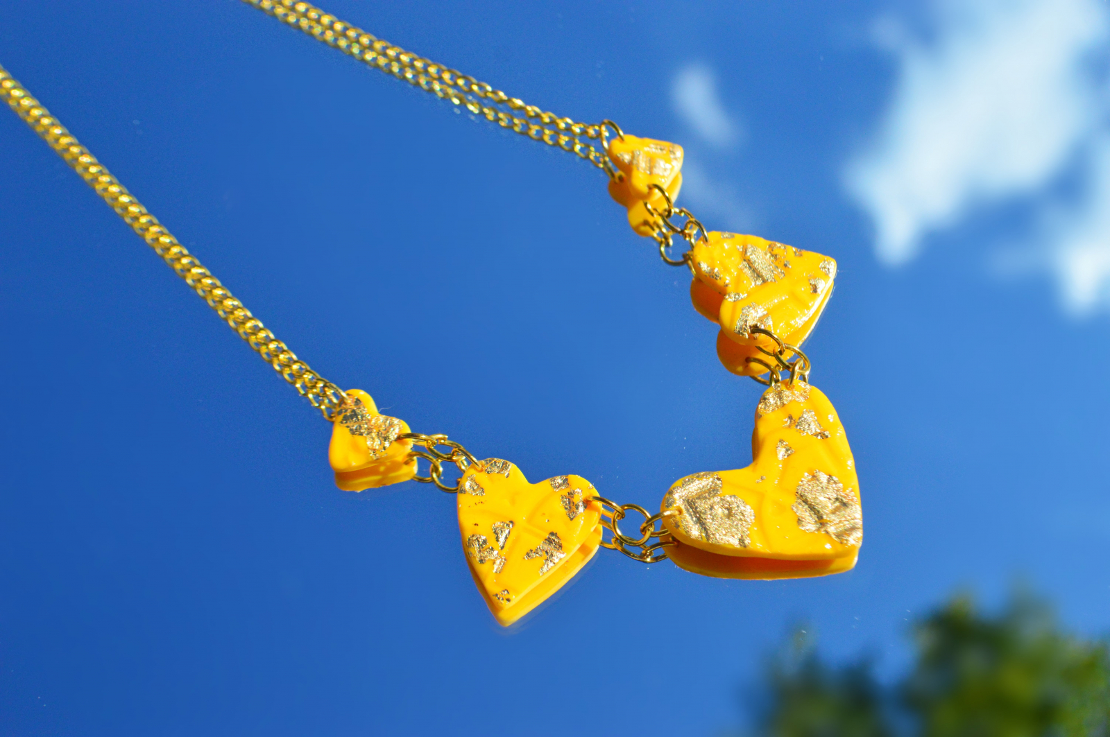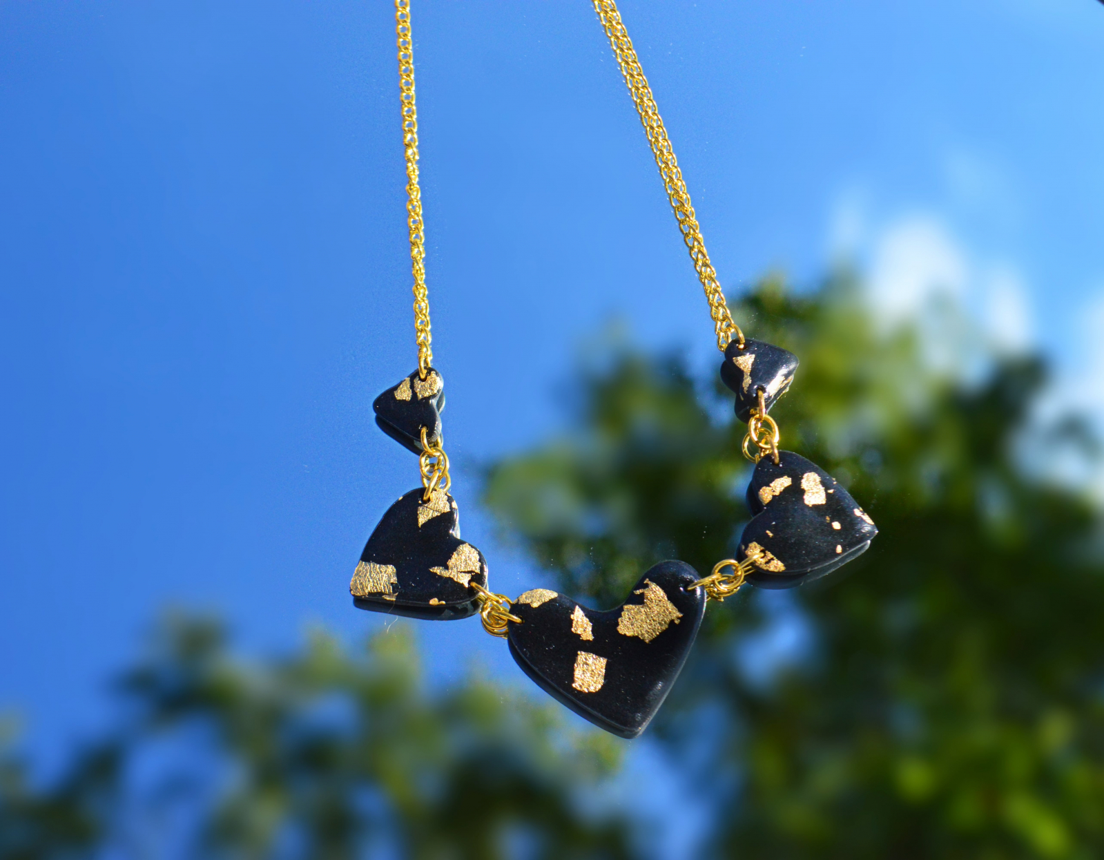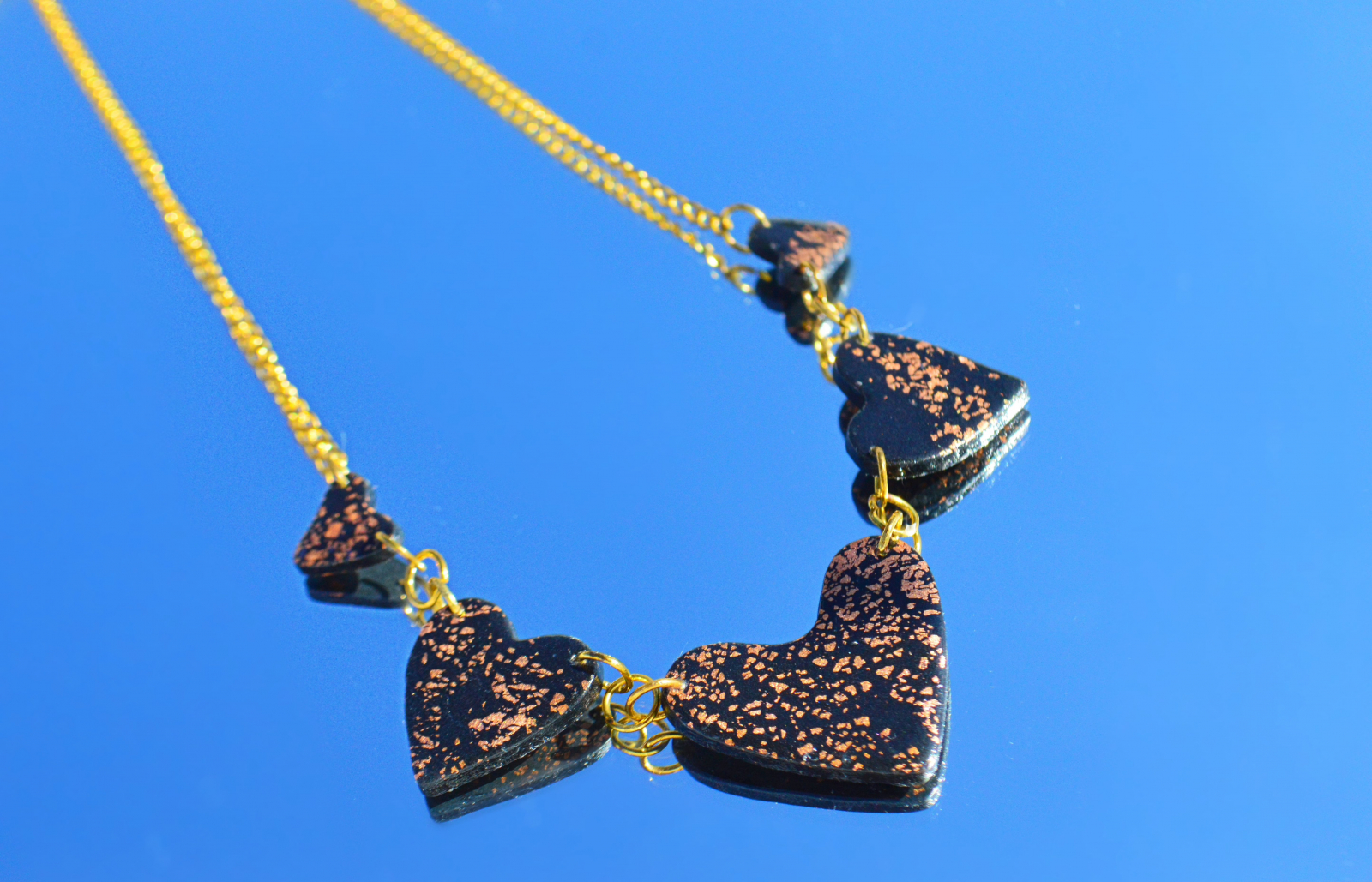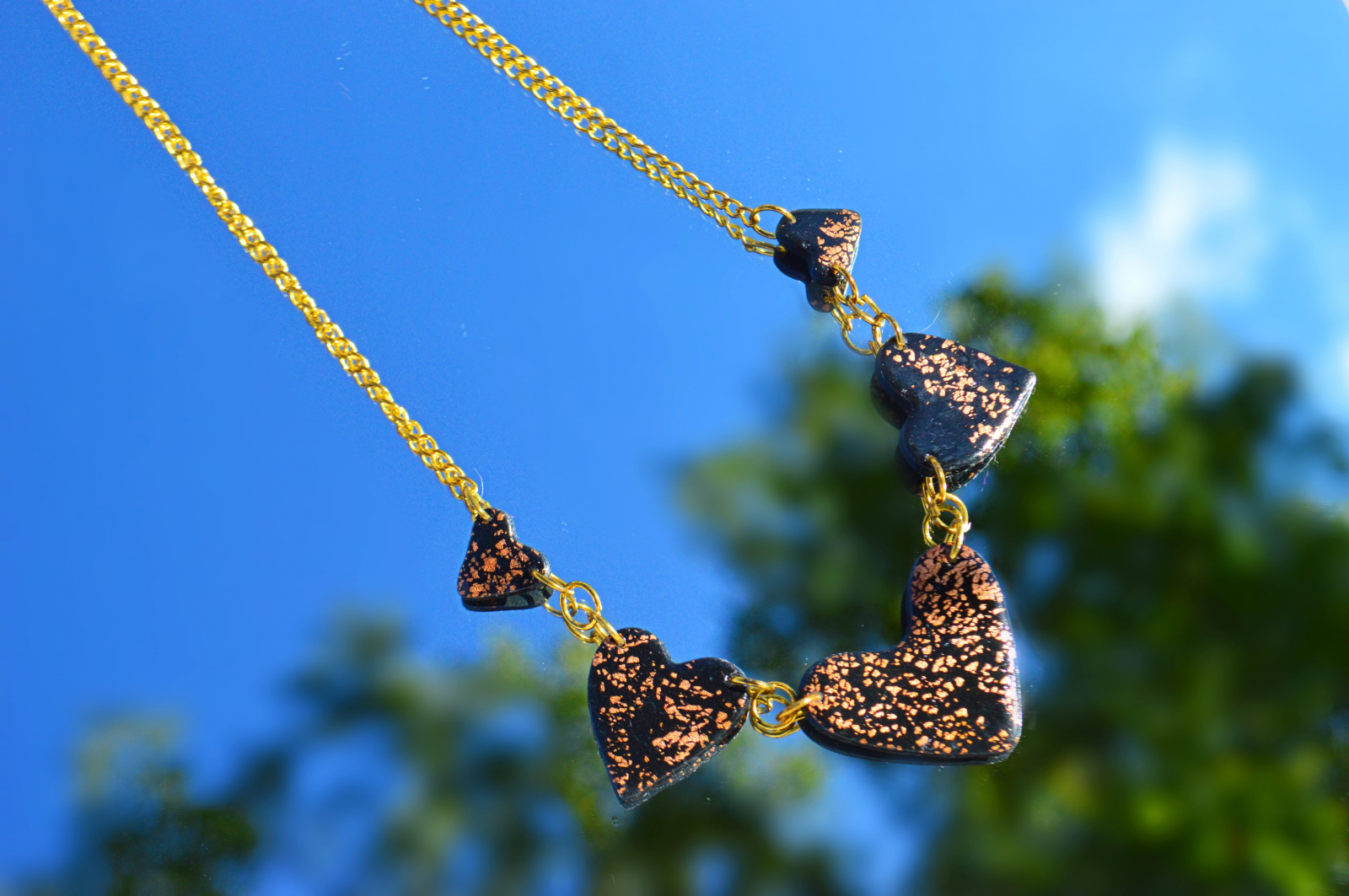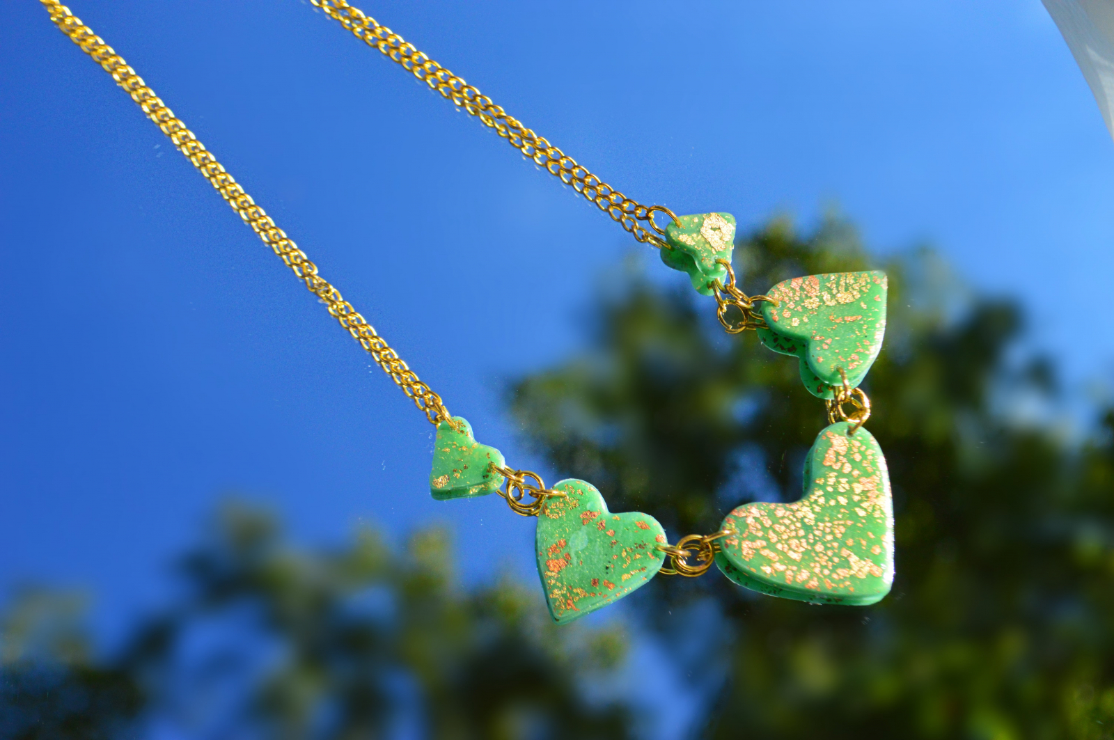 Colier din lut polimeric in forma de inimioare.